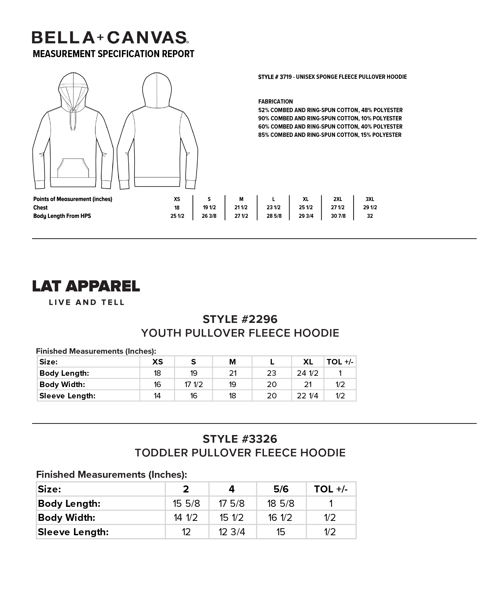 STYLE # 3719 - UNISEX SPONGE FLEECE PULLOVER HOODIE
